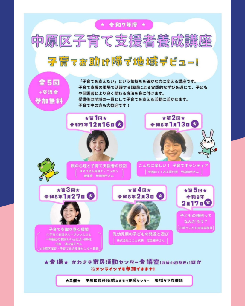 中原区子育て支援者養成講座に登壇します(1/27開催)